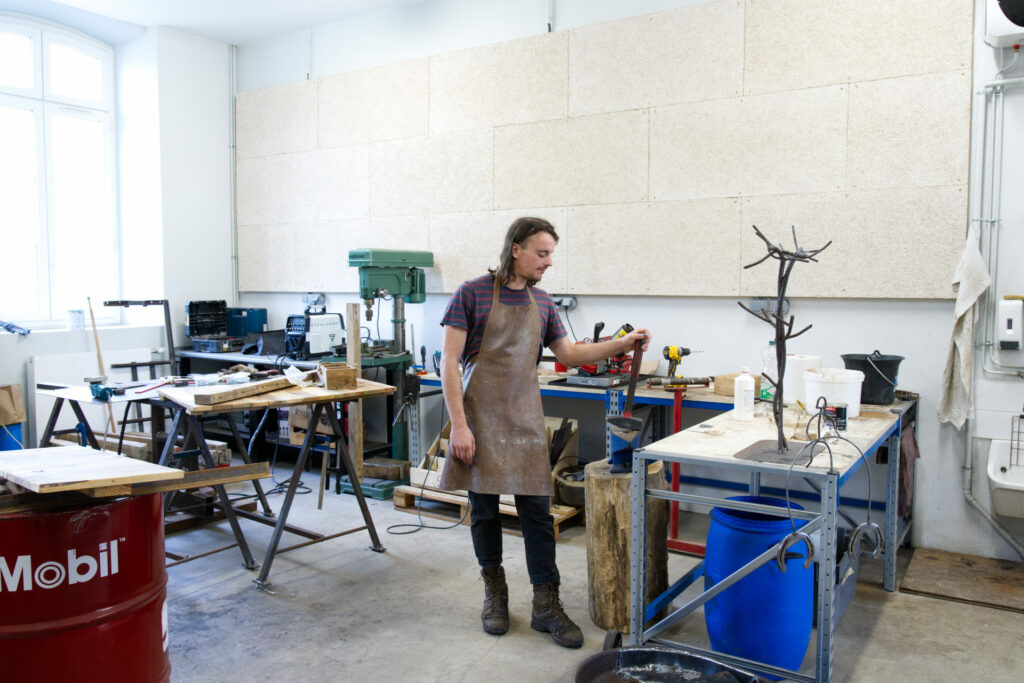 Situé au rez-de-chaussée du Bâtiment 25, l’atelier métal est un lieu de création et de fabrication. Pensé comme un espace partagé, il accueille artisans, artistes et curieux désireux d’expérimenter autour du métal, qu’il s’agisse de soudure, de ferronnerie ou de sculpture.